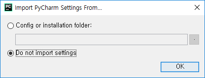- 이전 설정 불러오기 창이 나타납니다. Do not import settings를 선택하고 OK 버튼을 클릭합니다.