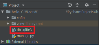 초기화 작업이 끝나고 프로젝트 탐색창을 보면 db.sqlite3 파일이 생겨있습니다. 이 파일에 우리가 웹 프로그래밍에서 다루는 회원 정보가 글 정보들이 저장됩니다. 파일 내용을 자세히 살펴보고 싶다면 sqplite viewer를 검색해 원하는 프로그램을 다운 받아 확인 할 수 있습니다.