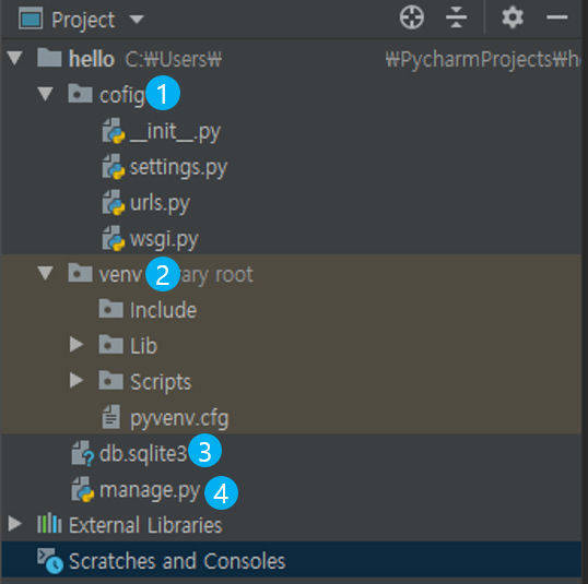 | 2. venv 폴더 : 프로젝트 구동에 필요한 가상환경이 들어있는 폴더입니다. 되도록 수정이나 삭제는 하지 않는 것이 좋습니다. |