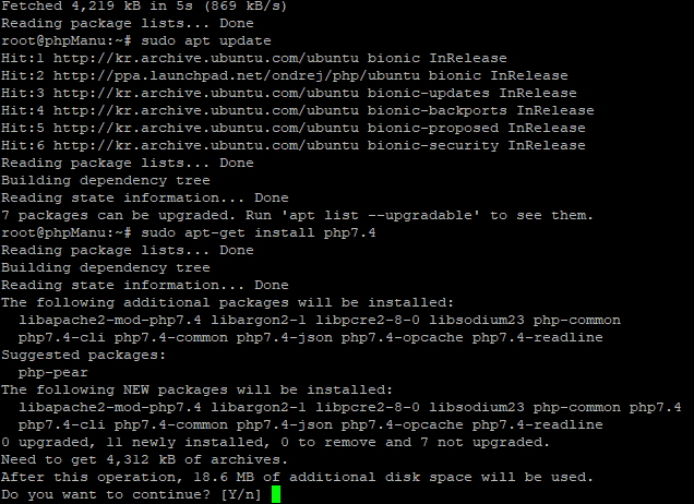 3. PPA에서 PHP 버전을 설치하려면 다음 패키지 이름 convetion을 사용합니다 phpX.X. 예를 들어 PHP 7.4를 설치하려면 php7.4패키지 이름을 입력합니다.