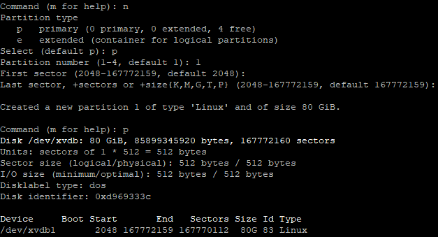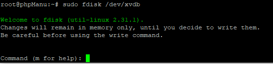 - sudo fdisk /dev/xvdb