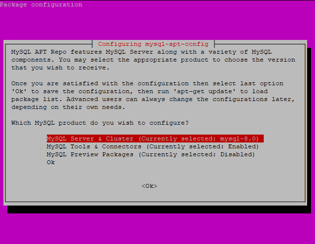 - sudo dpkg -i mysql-apt-config_0.8.16-1_all.deb